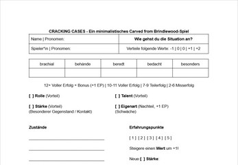 Dieser minimalistische Hack geht davon aus, dass du weißt, wie Rollenspiele im Allgemeinen und Carved from Brindlewood Spiele im Speziellen grundsätzlich funktionieren. Sollte das nicht der Fall sein, dann empfiehlt es sich, den Einstieg bei Brindlewood Bay selbst zu suchen. Jason Cordova, der Autor von Brindlewood Bay, erklärt im dazugehörigen Regelwerk Schritt für Schritt, wie man das Spiel leitet und welche Prinzipien es dabei zu beachten gilt.